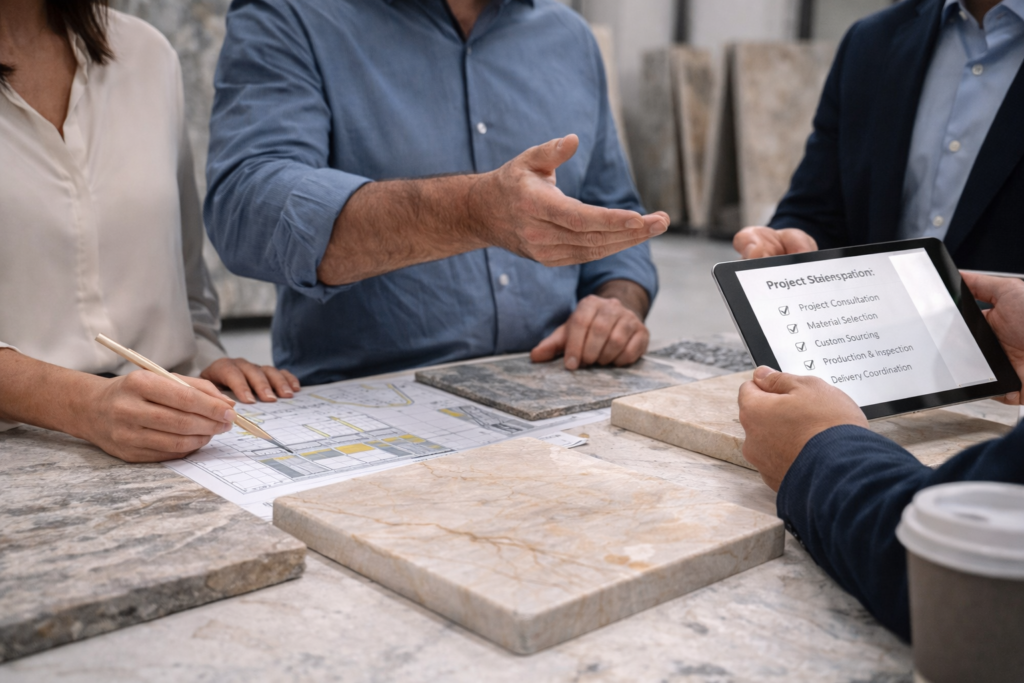 We are most often engaged on projects where cost efficiency, material consistency, and coordination across multiple stone applications are critical.