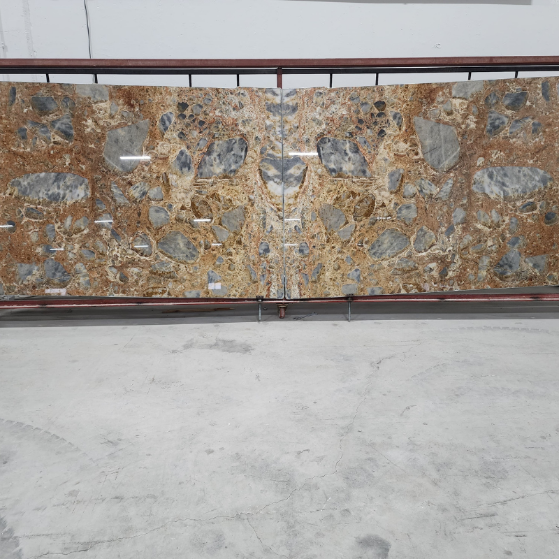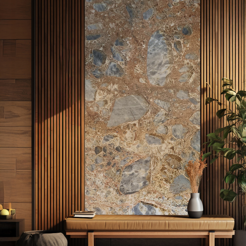 Azul Onyta Marble is a bold and expressive natural stone featuring a rich blend of warm browns, soft blues, greys, and dramatic veining. Its striking brecciated pattern makes it an ideal choice for feature walls, countertops, vanities, and statement interior applications in luxury residential and commercial projects.
