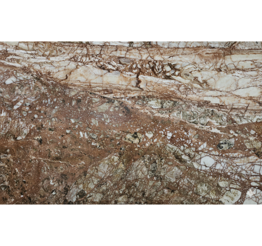 Four Seasons Marble is a distinctive Turkish natural stone featuring layered tones of warm brown, ivory, and soft green with dramatic brecciated movement. Its rich textures and natural contrast create a bold, artistic surface ideal for luxury interiors and statement architectural designs.