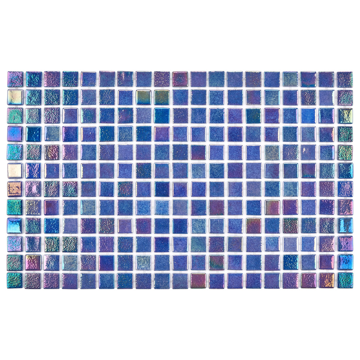 The Glass Pool Tiles BP-216 showcase a striking mix of sapphire blue, violet, and indigo tones with iridescent reflections of pink, lavender, and green. These 1″x1″ mosaics bring depth and elegance to pool interiors, spas, and decorative water features. Designed with advanced Polybond mounting technology, they offer long-lasting durability and beauty in Vancouver, British Columbia, and across Canada.