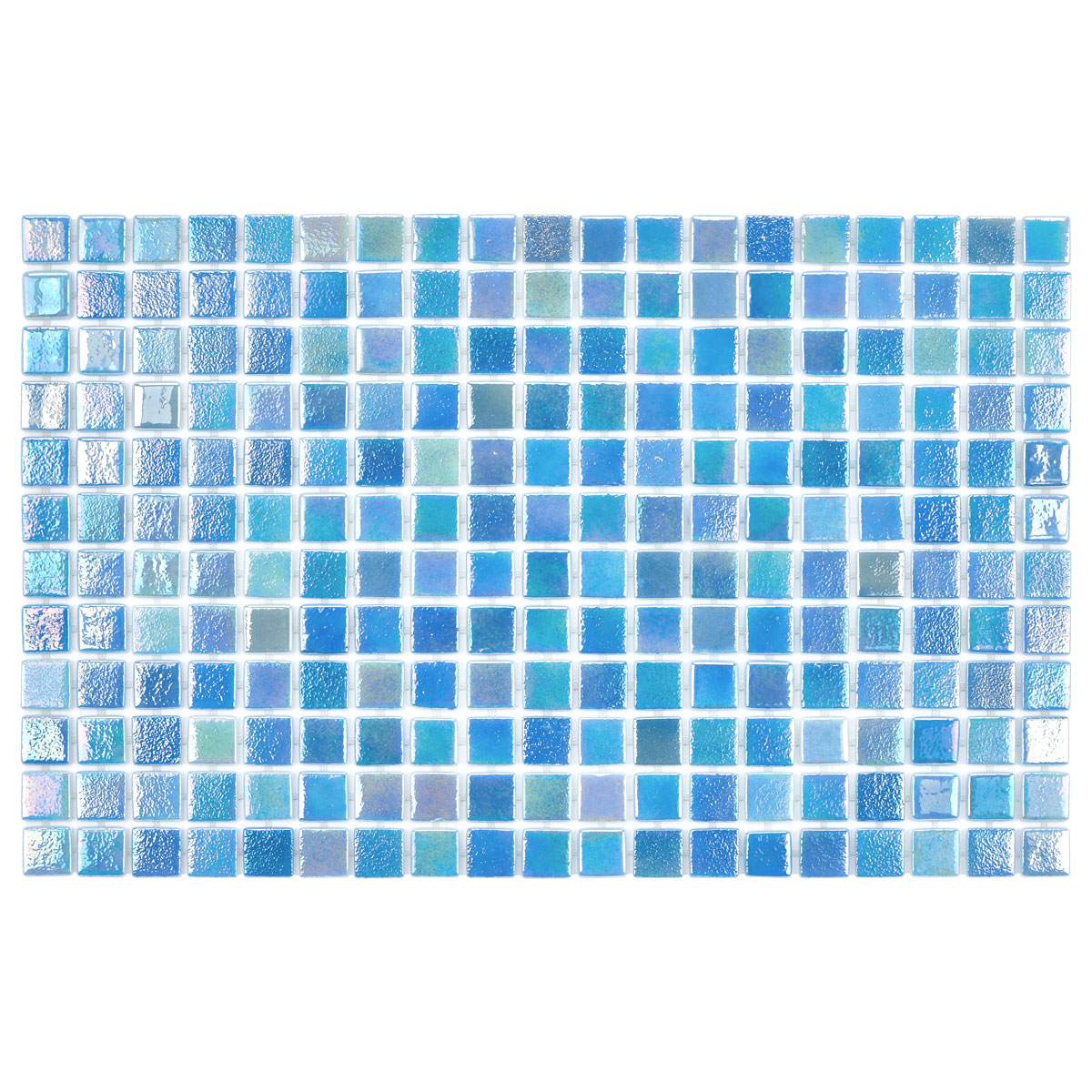 The Glass Pool Tiles BP-217 combine light aqua, sky blue, and soft turquoise with iridescent highlights that reflect hints of green and pearl. These 1″x1″ mosaics brighten any pool, spa, or water feature with a fresh, tropical look. Built with advanced Polybond mounting technology, they ensure long-lasting beauty and performance in Vancouver, British Columbia, and across Canada.