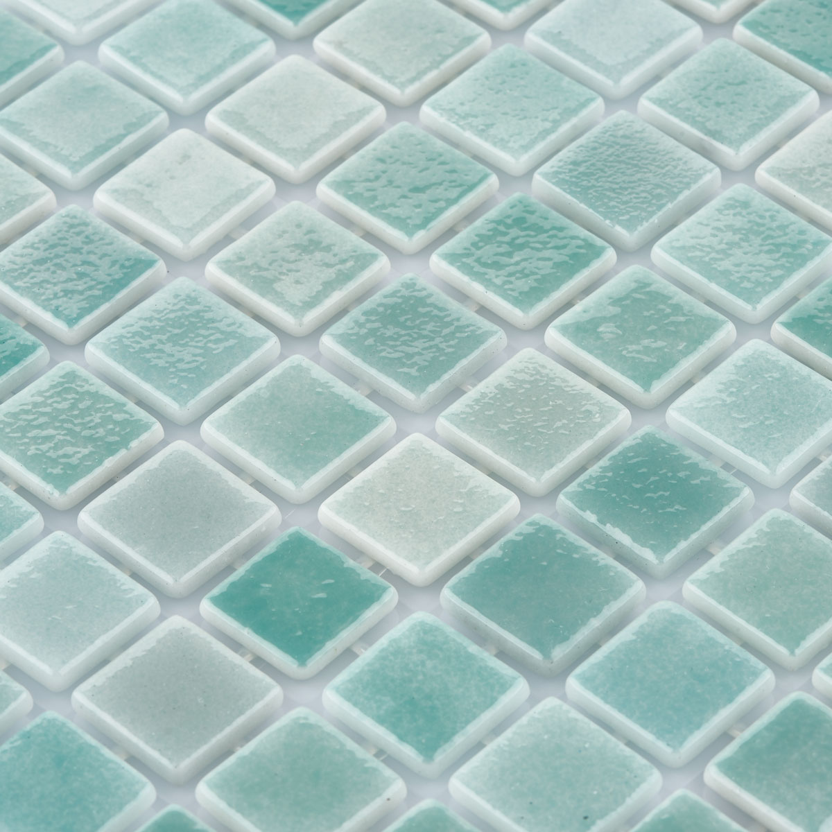 The Glass Pool Tiles BP-523 bring a refreshing, natural look with a blend of aqua green and ice-grey tones. Each 1″×1″ square mosaic has a glazed surface that creates a shimmering, water-like effect—perfect for swimming pools, spas, and water features. Mounted with advanced Polybond technology, these tiles are built for lasting performance in Vancouver, British Columbia, and across Canada.