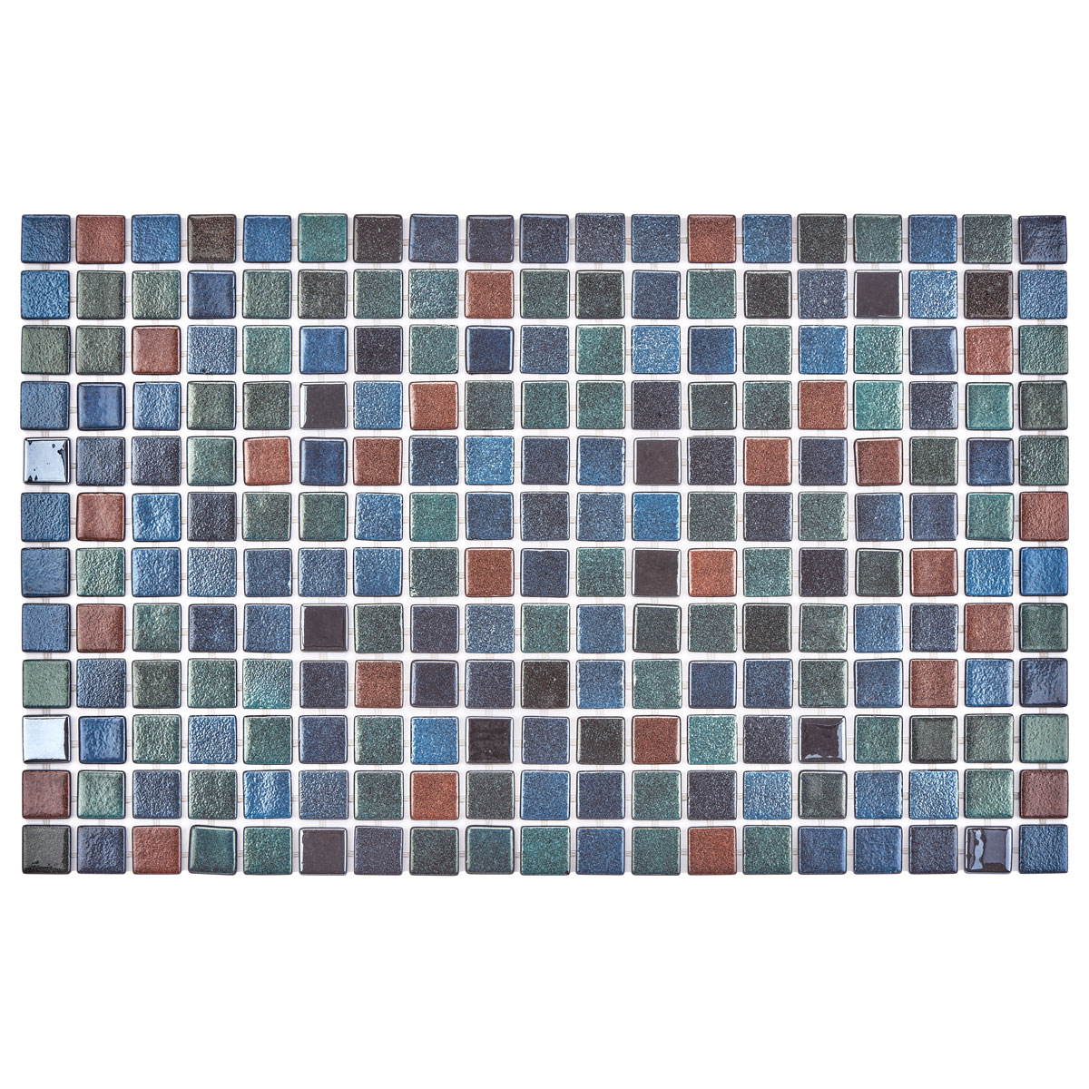 The Glass Pool Tiles BP-527 bring a bold, earthy style with a dynamic mix of blue, green, and bronze tones. Each 1″×1″ mosaic chip has a textured glazed surface that adds depth and character to pools, spas, and accent walls. With advanced Polybond technology, BP-527 is designed for long-lasting performance in Vancouver, British Columbia, and across Canada.